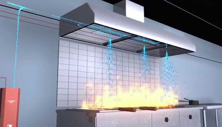 Mutfak ekipmanlarında veya davlumbaz içinde yangın algılandığında sistem otomatik olarak devreye girer.